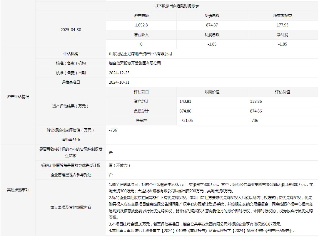 • 轉(zhuǎn)讓方:煙臺公共事業(yè)集團有限公司