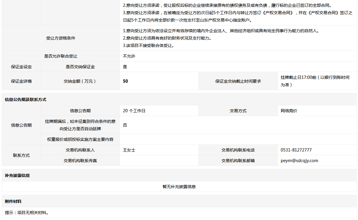 轉(zhuǎn)讓方: 煙臺市福山區(qū)財政局(煙臺市福山區(qū)國有資產(chǎn)監(jiān)督管理局)