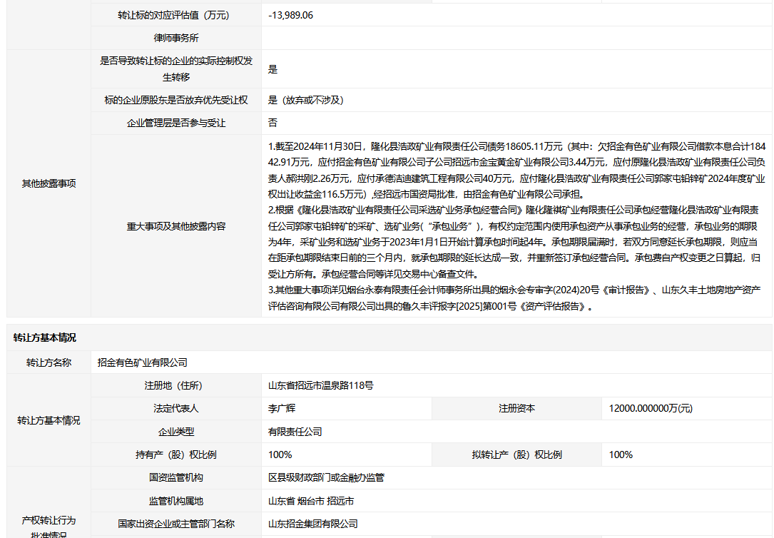 轉讓方:招金有色礦業(yè)有限公司
