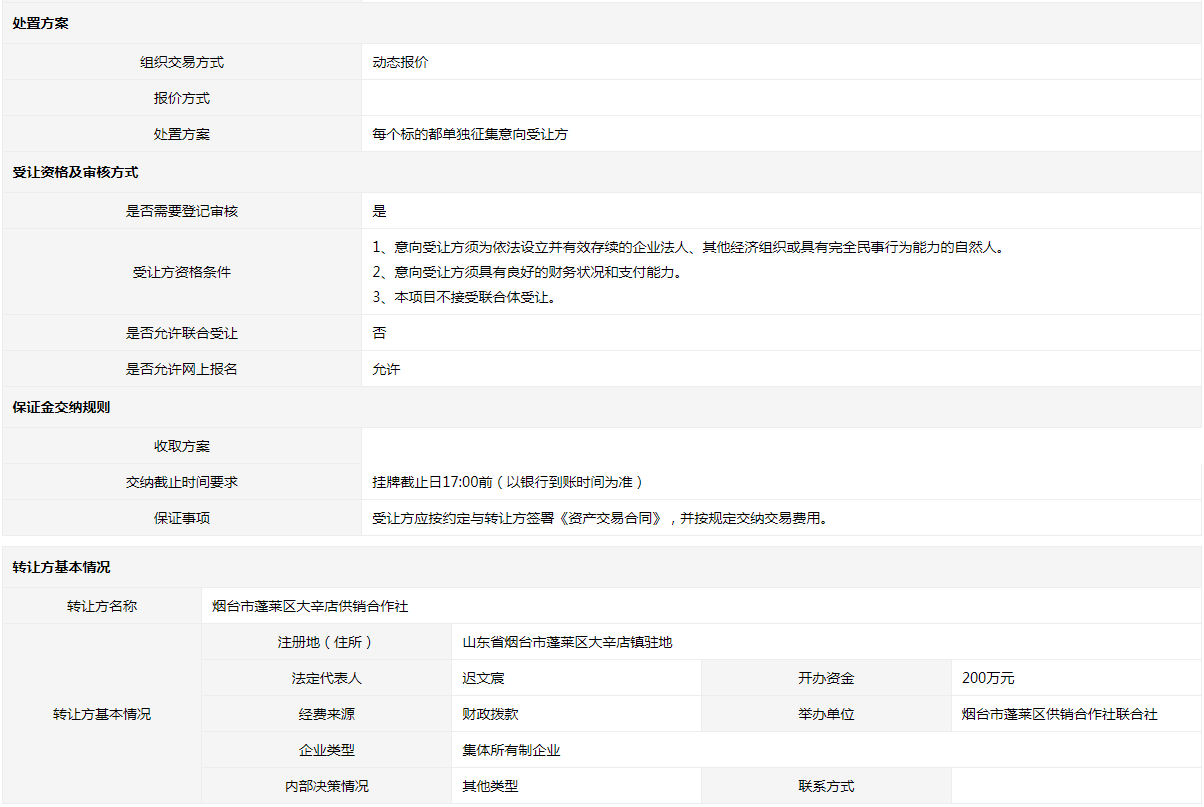 轉(zhuǎn)讓方:煙臺市蓬萊區(qū)大辛店供銷合作社