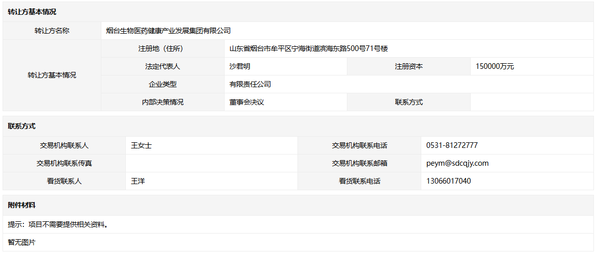 • 轉(zhuǎn)讓方:煙臺生物醫(yī)藥健康產(chǎn)業(yè)發(fā)展集團有限公司