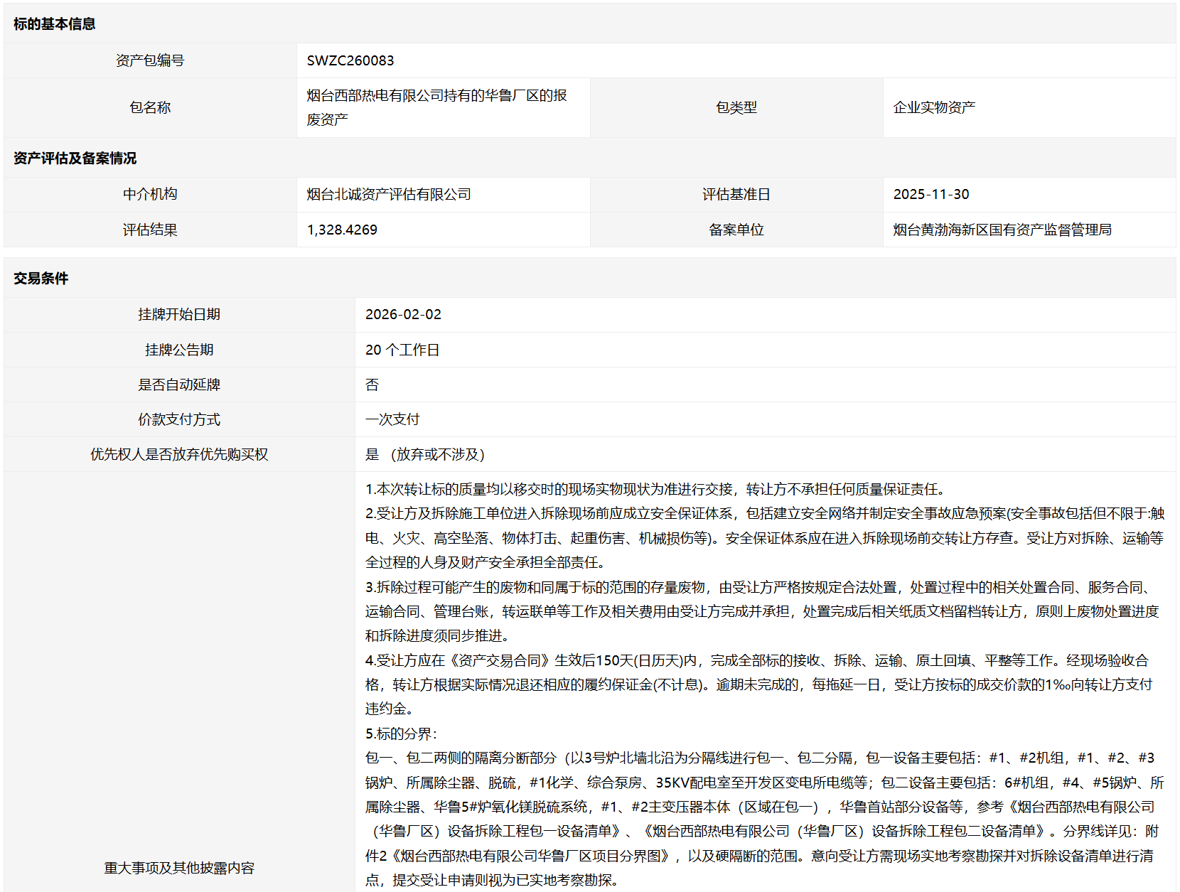 煙臺西部熱電有限公司持有的華魯廠區(qū)的報(bào)廢資產(chǎn)