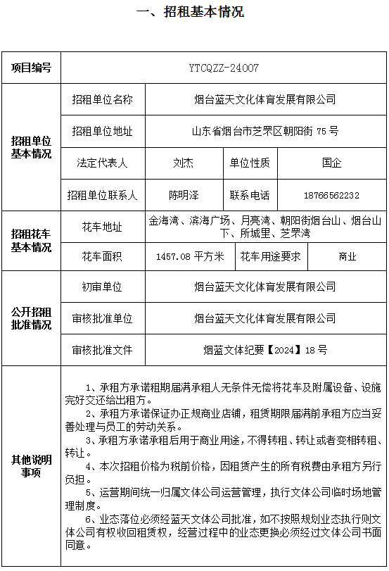 煙臺藍(lán)天文化體育發(fā)展有限公司部分花車招租