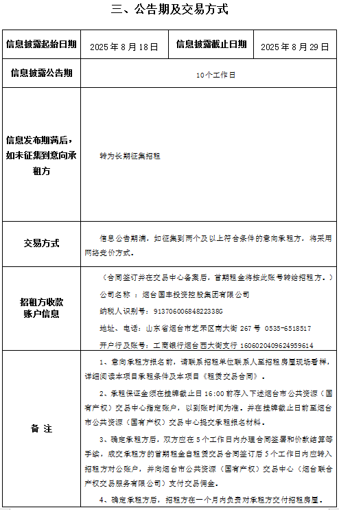 • 掛牌起止日期:2025年8月18日至2025年8月29日